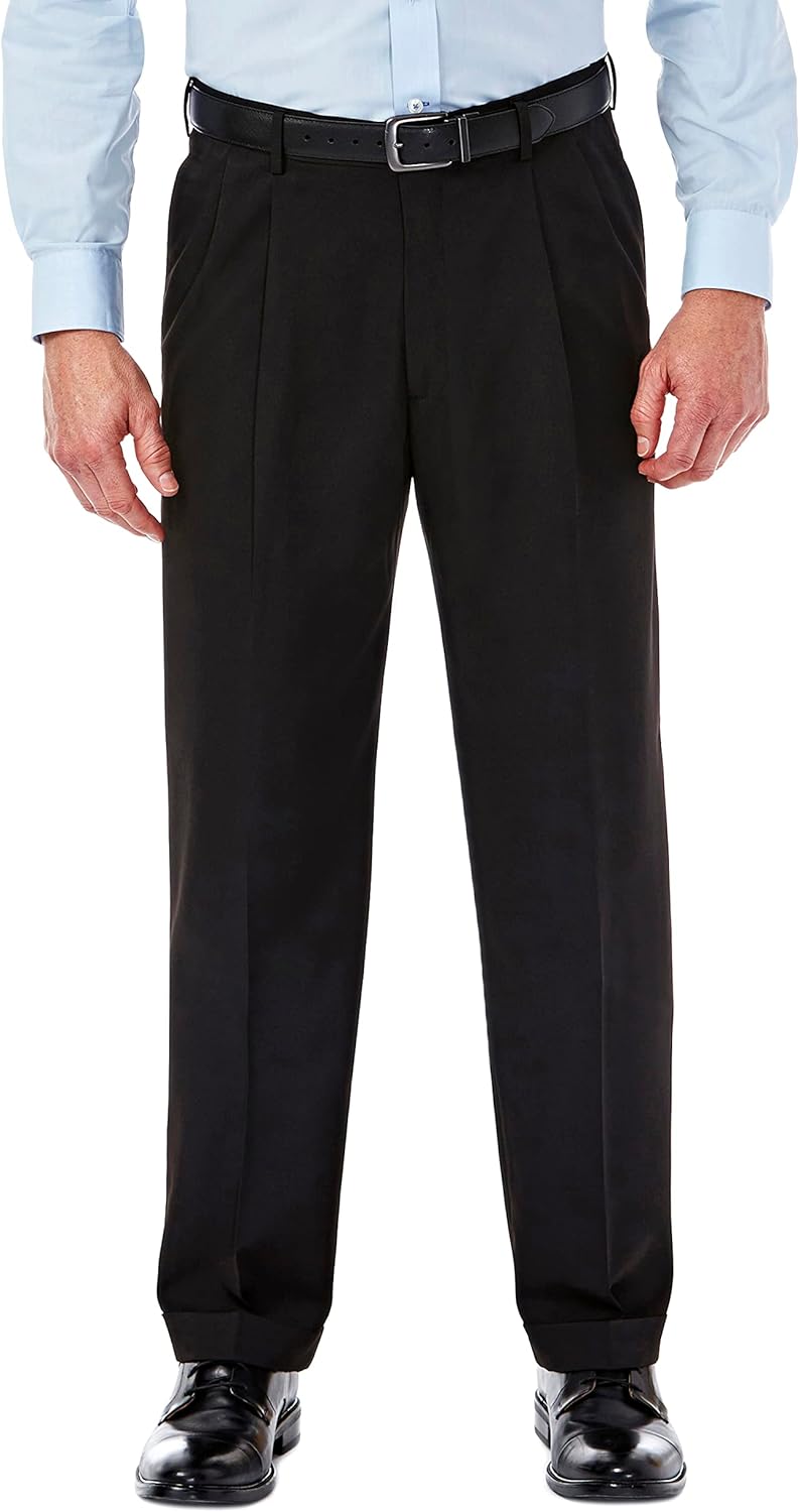 • DESIGN DETAILS: This no iron pleat front classic fit dress pant features a hook and bar closure, off seam front pockets, double welt button through back pocket and a blind hem